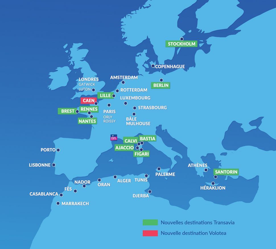 Découvrez la carte des destinations pour l'été 2021 de l'Aéroport de Montpellier-Méditérannée