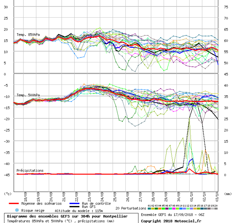 Le diagramme suivant parle de lui-même. Issu d’une moyenne de 21 scénarios proposés par l’ensemble GEFS, il n’affiche aucun risque majeur d’épisode pour les jours à venir.