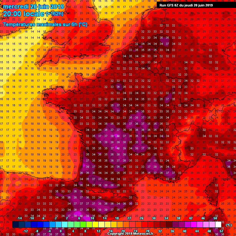 Températures maximales mercredi prochain – modèle GFS (meteociel.fr) |