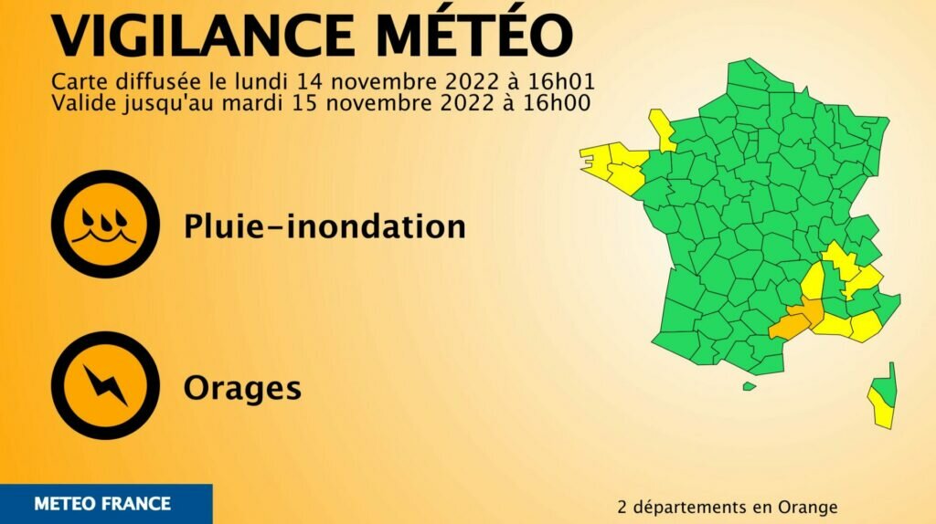Faits nouveaux : passage en vigilance orange sur les départements de l’Hérault et du Gard. Situation générale : l’épisode méditerranéen pluvio-orageux a bien démarré comme prévu.