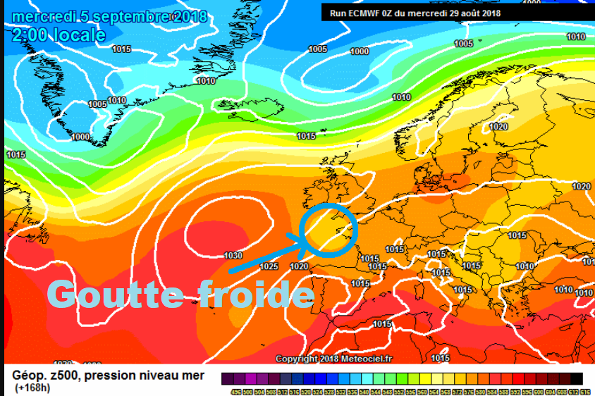 Lexique météo : Comment se forme une goutte froide? 0 Par La rédaction le 2 novembre 2018 Non classé Mais comment se forme une goutte froide ? + d’explication dans la vidéo ci-dessous @mcom27 @LeJournaldAnais Extrait journal #météo 20h35 du 01 novembre 2018 sur @France2tv A tout à l’heure pour votre journal #météo pic.twitter.com/GiNEf7PHRW — Anaïs Baydemir (@anais_baydemir) 2 novembre 2018 Exemple de goutte froide – meteociel.fr Dernière mise à jour le 2 novembre 2018 à 13h25