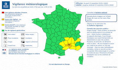 Le Gard passe en vigilance orange pour les phénomènes ORAGE, PLUIE, et CRUE.