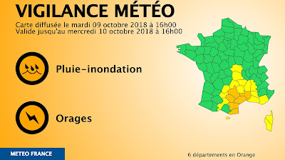A 16h00, Météo France a mis à jour son bulletin de vigilance.